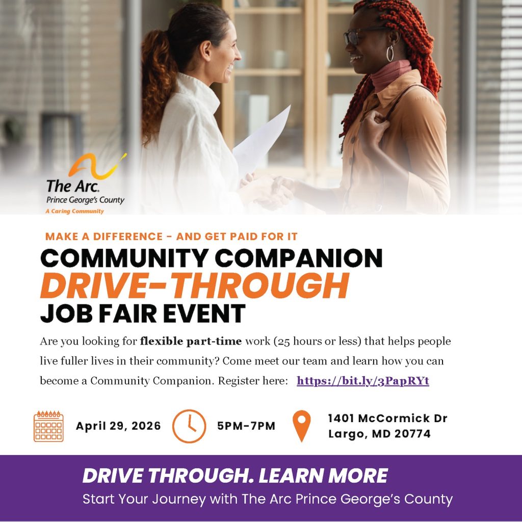 Since 1952, The Arc Prince George’s County has been a trusted leader in creating opportunities for people with intellectual and developmental disabilities. What began as a grassroots effort has grown into a powerful force for inclusion—helping to launch special education programs, shape public policy, and build a stronger, more inclusive community. The Arc remains deeply committed to empowering people with disabilities, their families, and others facing life-changing circumstances including seniors and those struggling to access to healthcare and essential services. We provide a lifetime of support, understanding, and opportunities to help them reach their greatest potential.