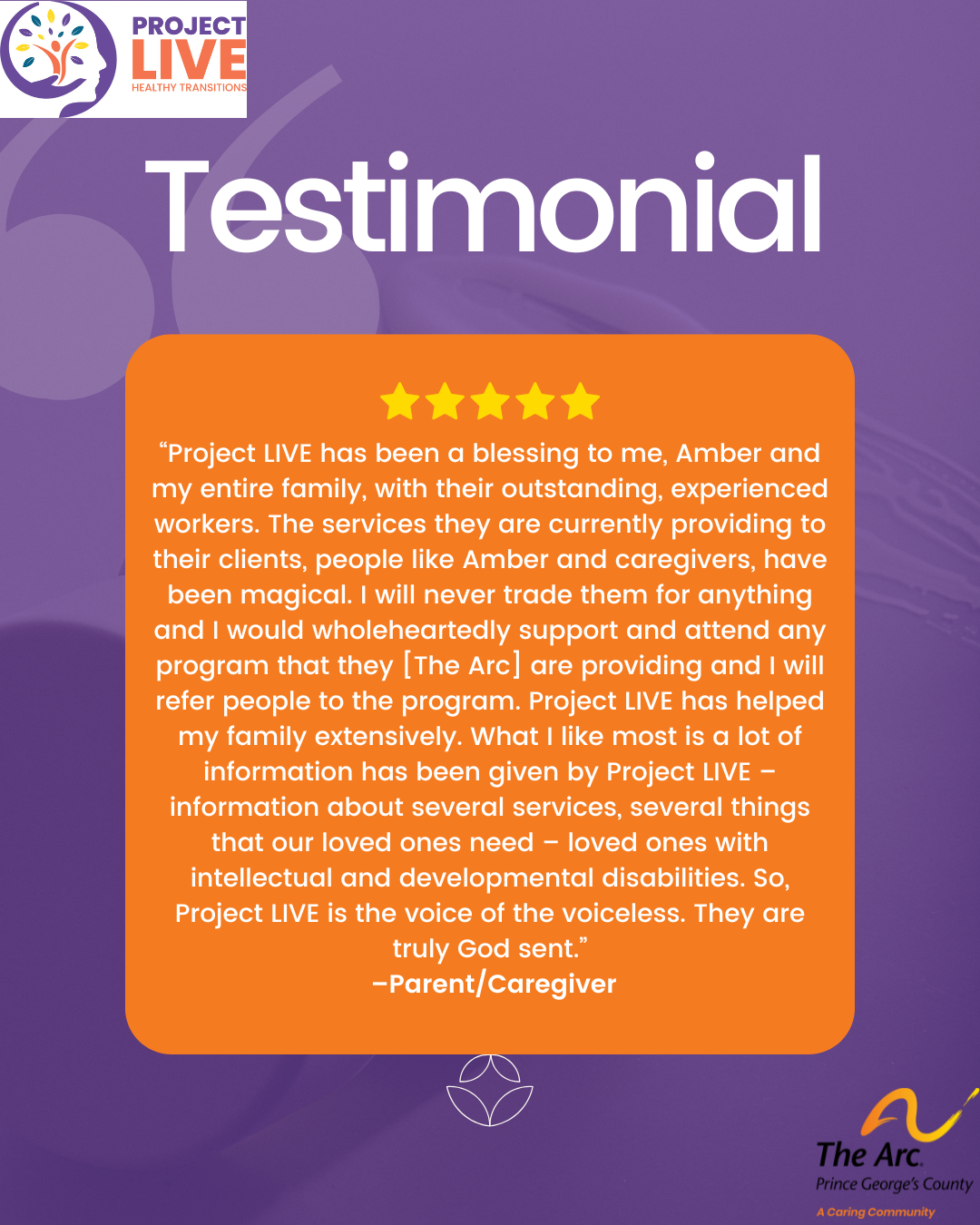 Project LIVE, a program in partnership with SAMHSA, is expanding access to mental and behavioral health services to youth ages 16 – 25 located in Prince George’s County who are diagnosed with Intellectual and Developmental Disabilities and at risk of Developing Serious Emotional Disorder or Mental Health Condition.